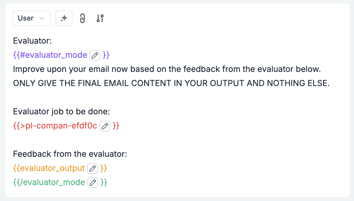 evaluator_mode | Activates email refinement mode | ”TRUE” or "" (empty) |